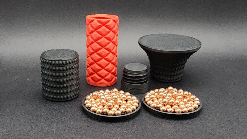 All handles are printed from PLA or stronger and all tops are matte black PLA.