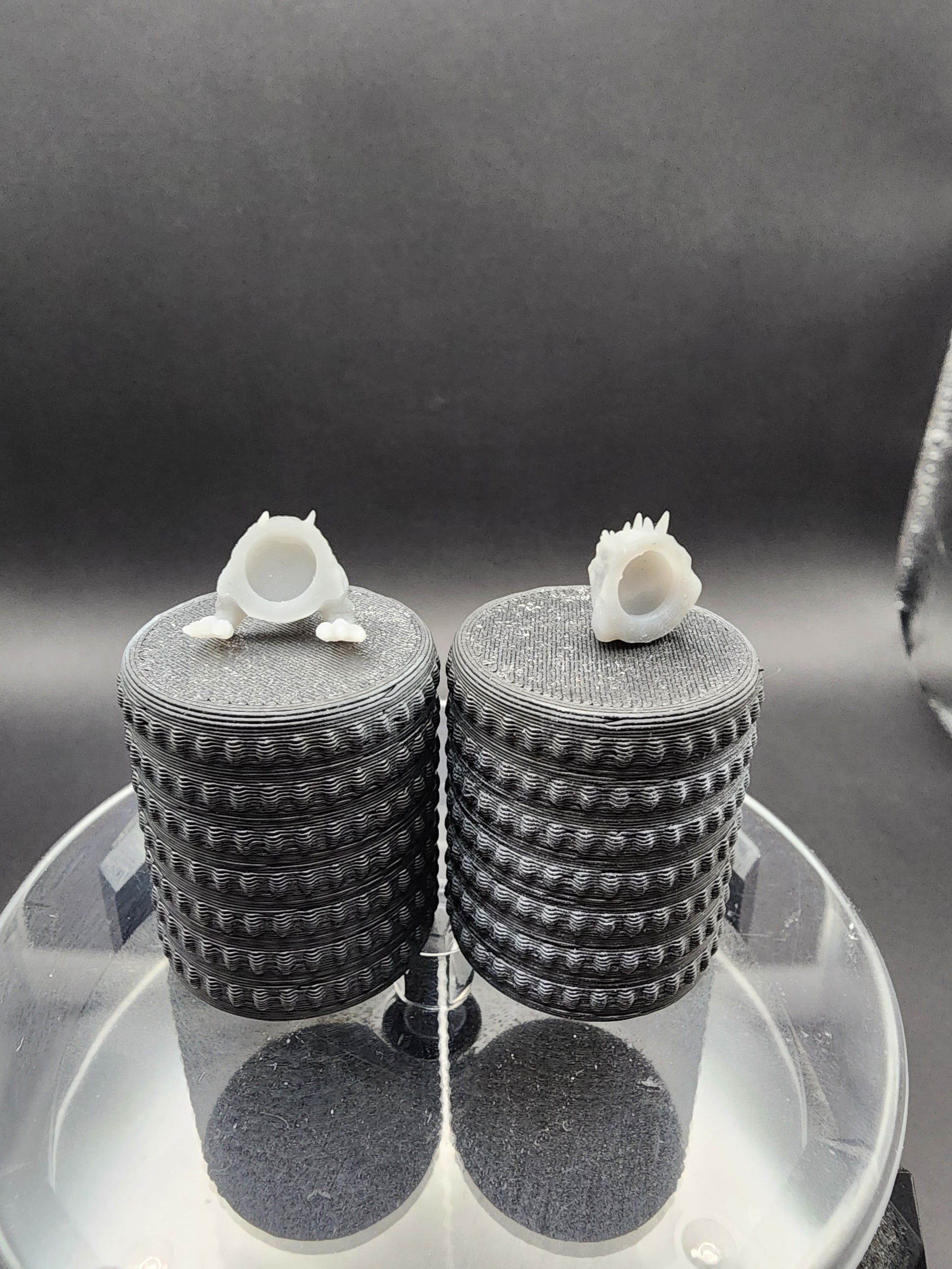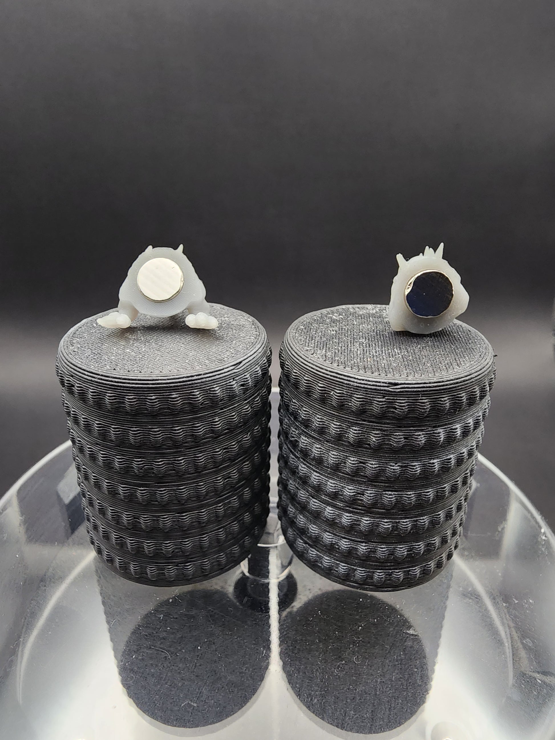 The non-magnet format. This is basically the complete opposite of the magnet format. The model is a single piece with a small hole in its back where you can install an eye pin and dangle the goodest boys from your earlobes.